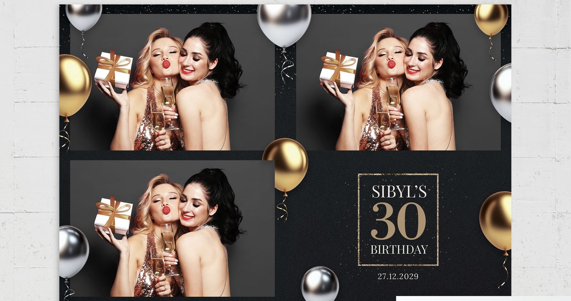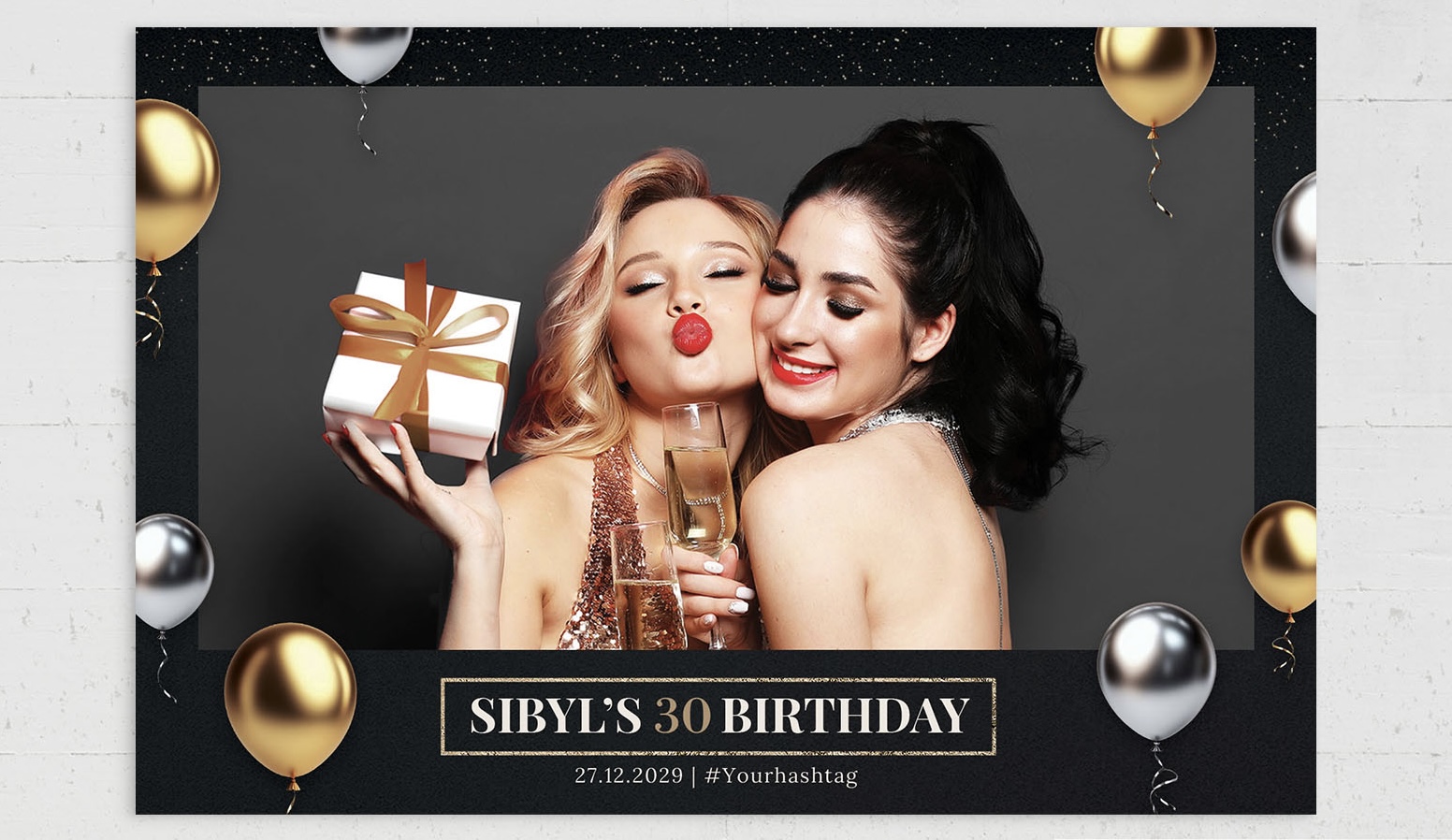 Wir gestalten für Sie ein einzigartiges Layout, maßgeschneidert auf Ihr Event. Ganz nach Ihren Wünschen – mit Datum, Namen und einem oder mehreren Fotos – entsteht so ein individuelles Highlight, das genau zu Ihnen passt für 20€.